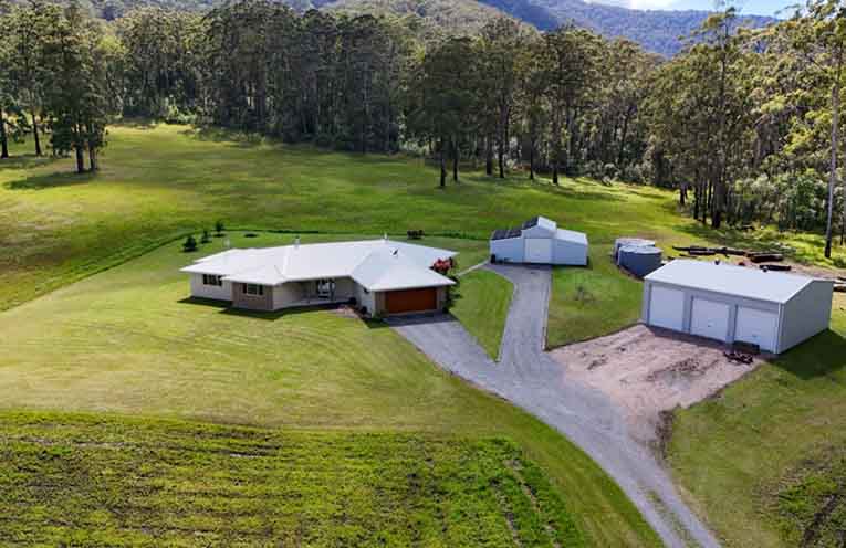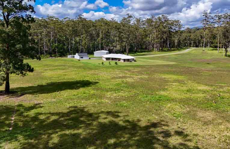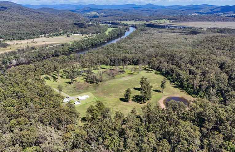 Nestled at the base of North Brother Mountain, the estate enjoys sweeping vistas over Watson Taylor Lake and a remarkable 695 metres of Camden Haven River frontage.