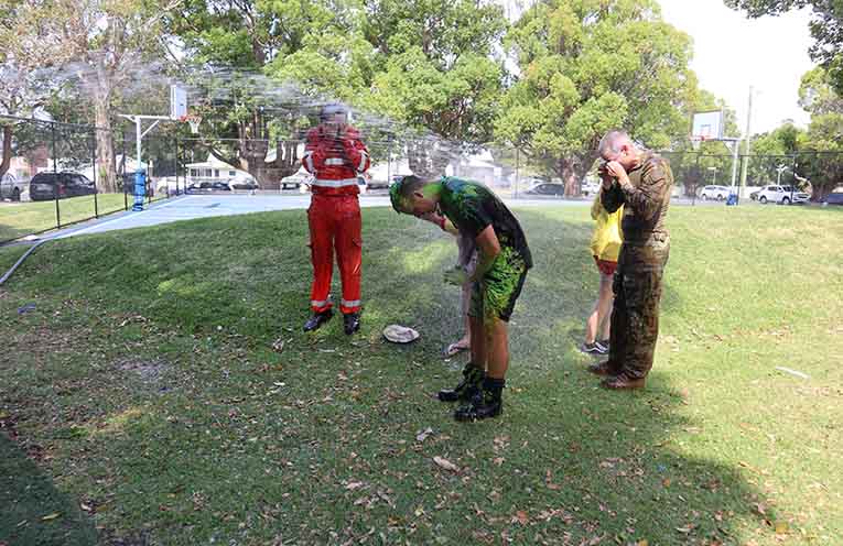Several brave community members volunteered to be slimed before a crowd of cheering children and parents, including Tennis Coach Quinn S, Warrant Officer Josh T, Camden Haven SES member and artist Jared A, Firefighter Laws, Laurieton Lifeguard Gilly, and Surf Lifesaver and former LPS student Lillian H.